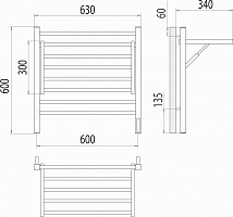 Горизонт П8 600х600 электро КС ЧЕРНЫЙ МУАР (sensor quick touch) Полотенцесушитель TERMINUS